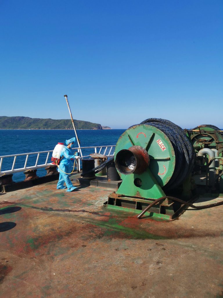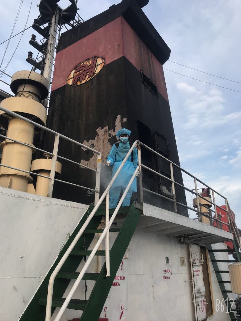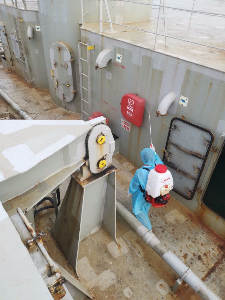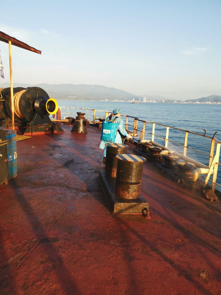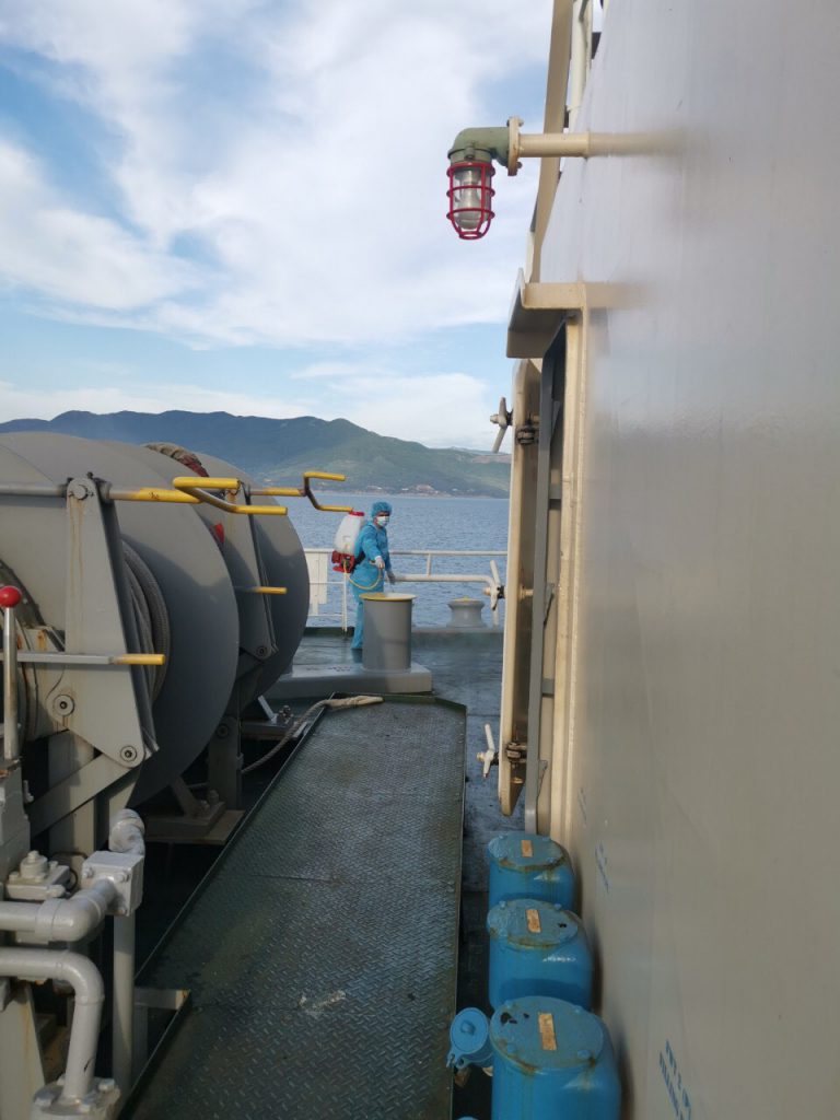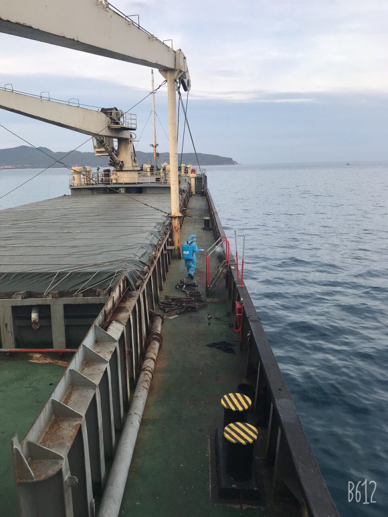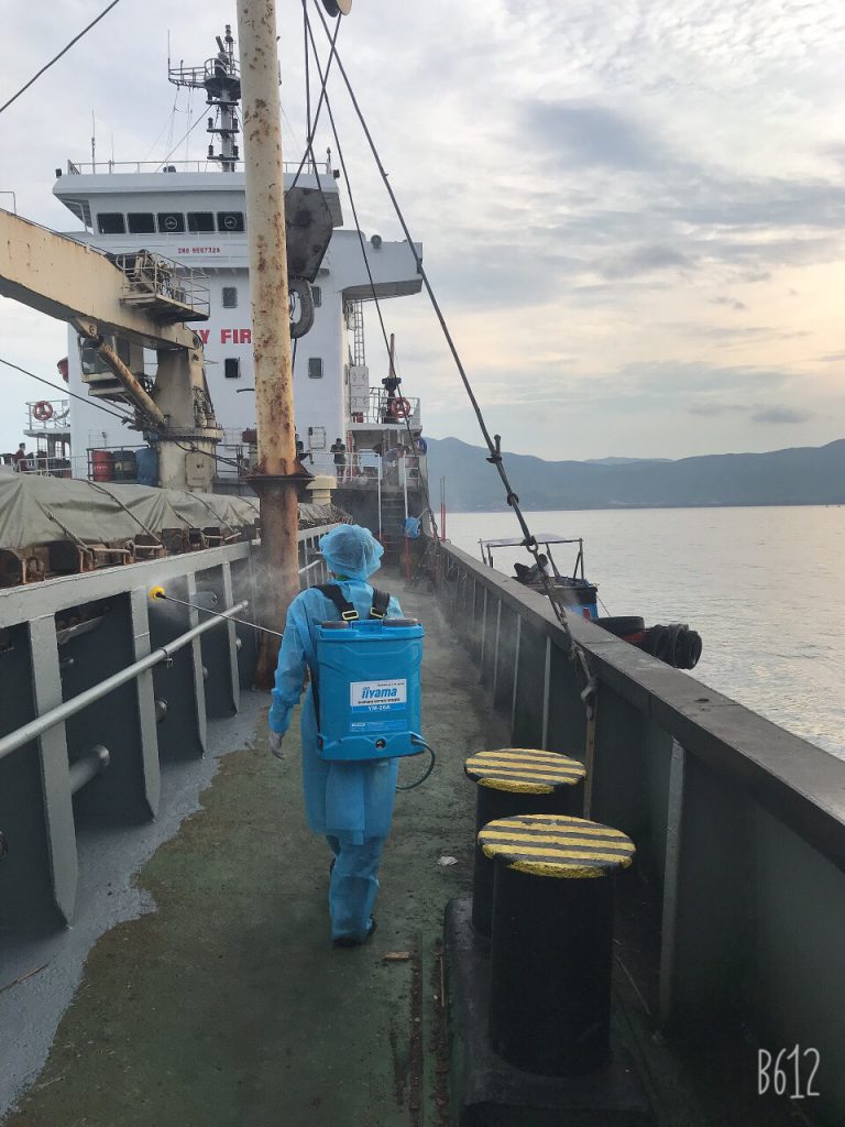 Dưới đây là một số hình ảnh nhân viên Vietnamcontrol Quy Nhơn phun sát khuẩn cho các tàu chở hàng tại phao số 0 – Cảng Quy Nhơn – Bình Định: