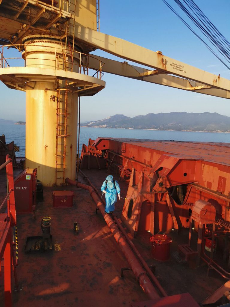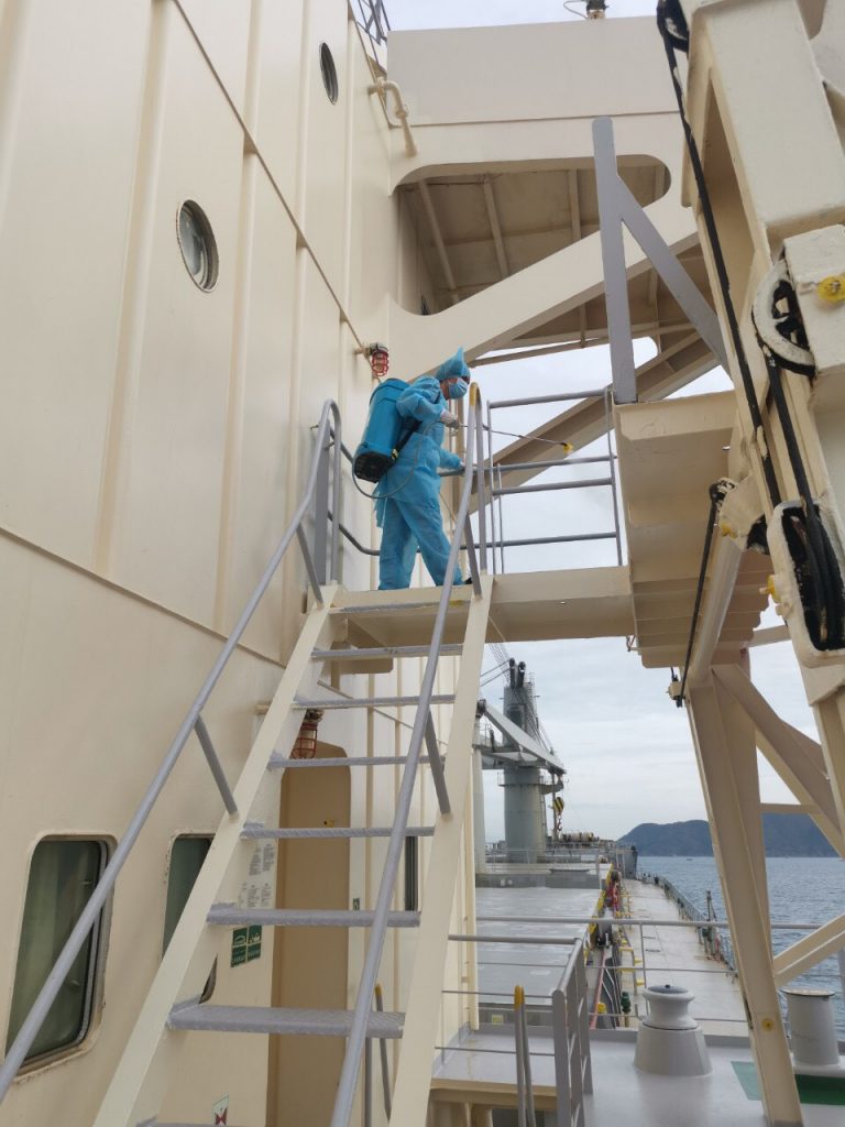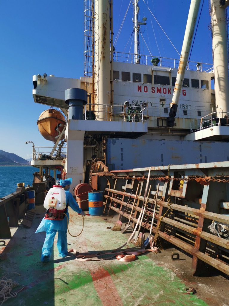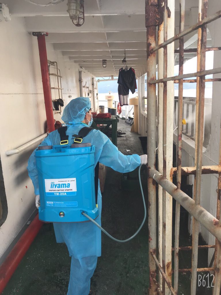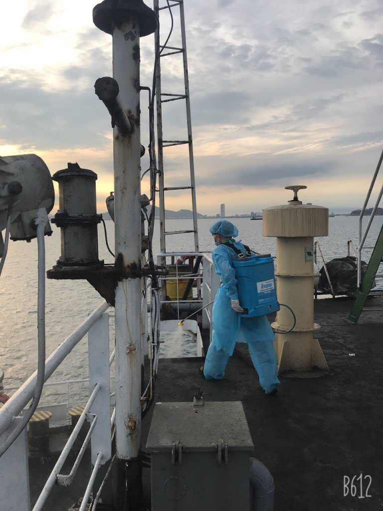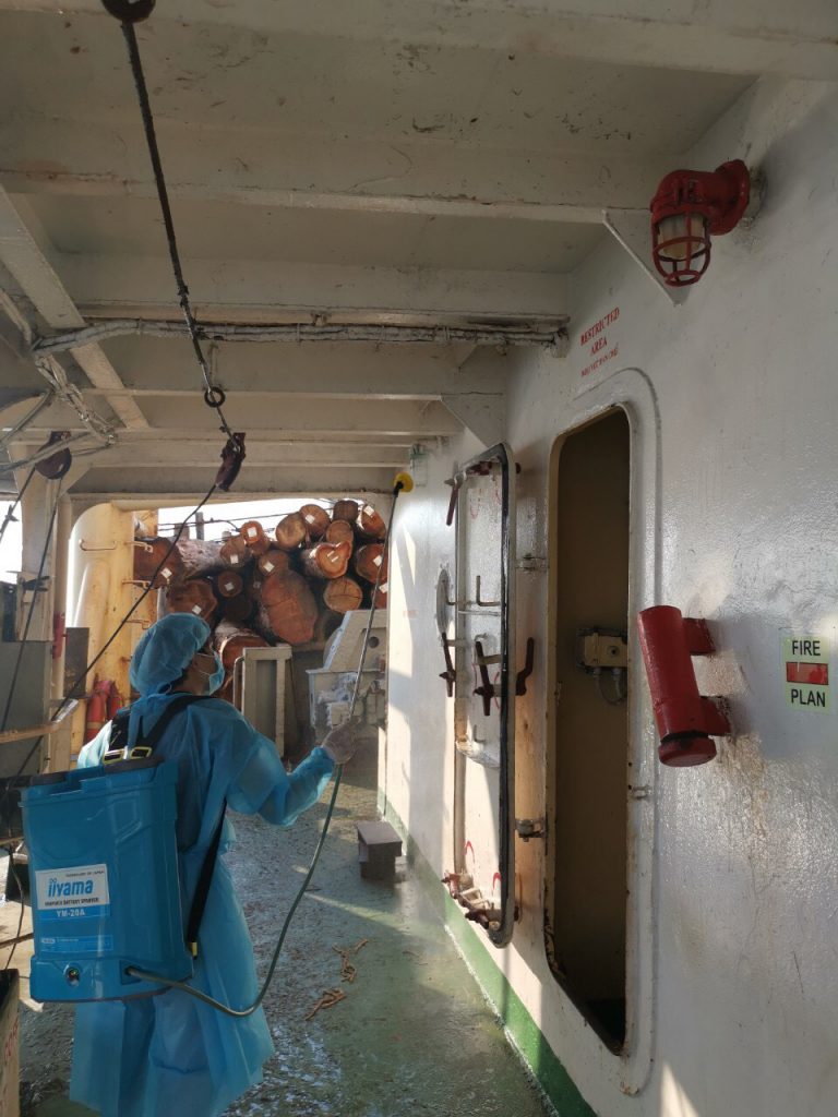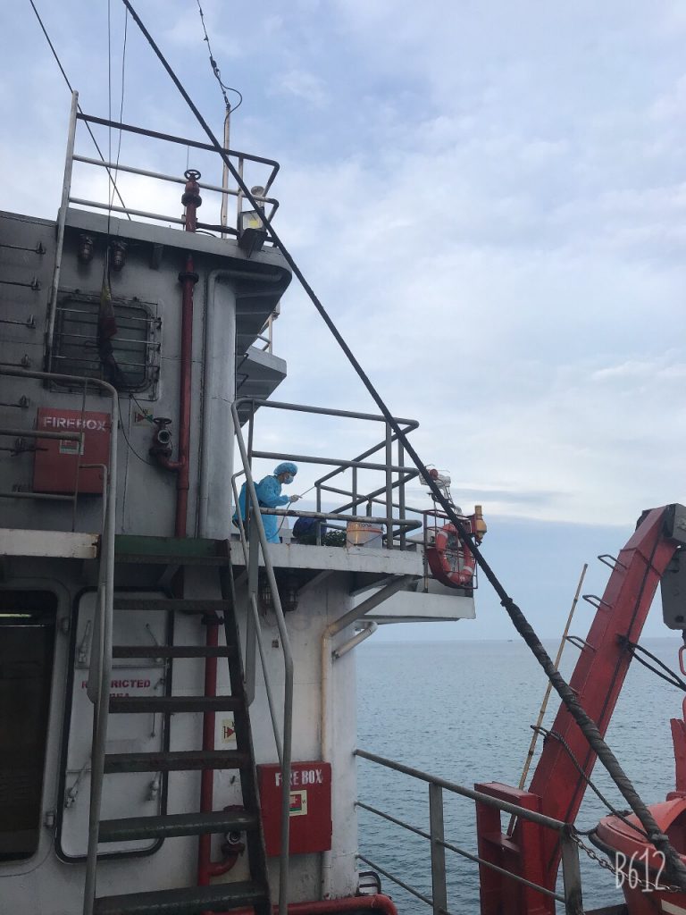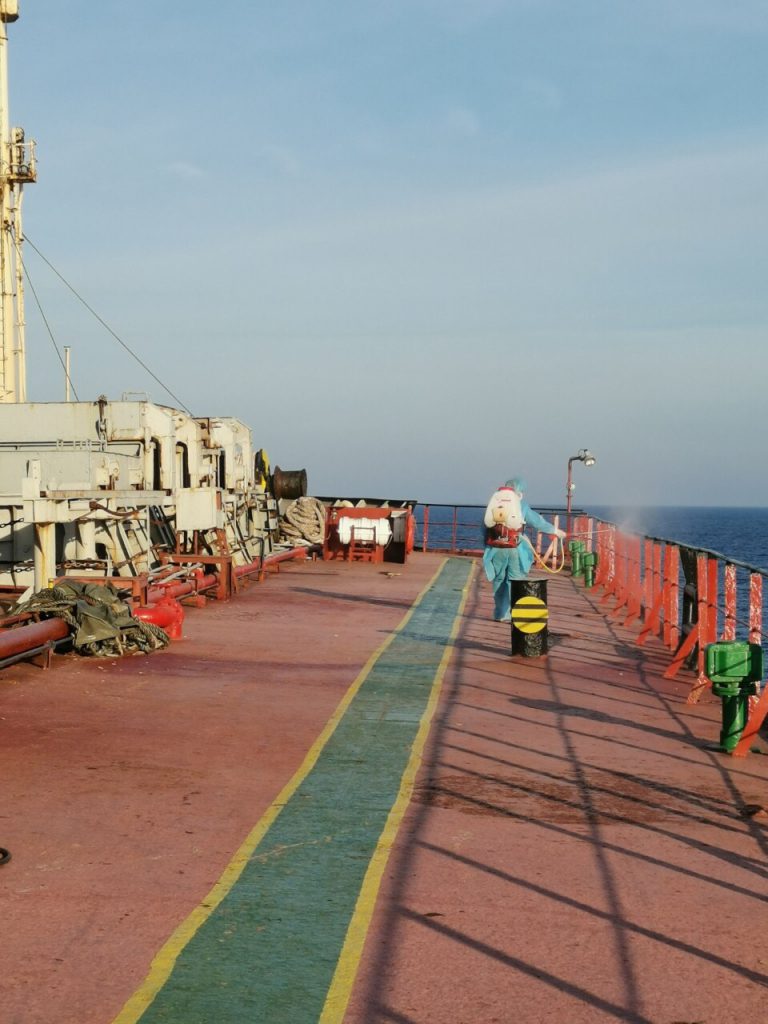 Dưới đây là một số hình ảnh nhân viên Vietnamcontrol Quy Nhơn phun sát khuẩn cho các tàu chở hàng tại phao số 0 – Cảng Quy Nhơn – Bình Định: